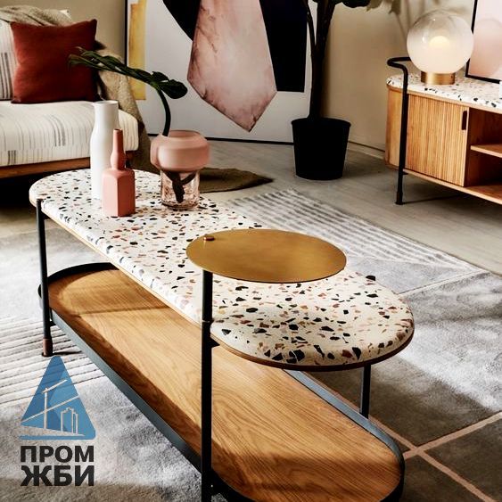 ОТГРУЗИЛИ ИЗДЕЛИЙ с 2008 года: тонн по чертежам тонн по сериям и ТУ тонн из артбетона МебельПредметы мебели – это то, без чего невозможно представить ни жилую комнату, ни офисное помещение, ни уголок отдыха на промышленном предприятии. Они служат для формирования комфортной среды, но только практическими качествами в этом случае обойтись нельзя. Мебель должна иметь привлекательный внешний вид, вписываться в разные стили интерьера. «ПромЖБИ» предлагает мебель для разных помещений, изготовленную по технологии терраццо. Вся продукция проходит строгий контроль качества, включая тестирование готовых изделий в собственной лаборатории компании (в подтверждение каждый покупатель получает технический паспорт, где указаны все характеристики). Мы обеспечиваем ценовую доступность оригинальной мебели, реализуя ее без посредников и дилеров, напрямую от производителя.